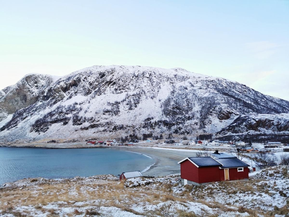 Reine, sebuah desa kecil di Kepulauan Lofoten, Norwegia dikenal sebagai salah satu pemukiman pesisir paling fotogenik di kawasan Arktik. Saat musim dingin tiba, desa ini berubah bak lukisan yang menjadi nyata. Deretan rorbu (kabin nelayan tradisional Norwegia) berwarna merah cerah berdiri kontras di tepi fjord yang membeku. Dengan latar pemandangan puncak gunung granit yang menjulang dan tertutup selimut salju yang tebal, desa ini juga menjadi salah satu titik terbaik untuk menyaksikan Aurora Borealis, terutama saat malam cerah antara Desember hingga Februari.